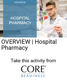 <a href="https://corereadiness.com/learning-center/course/P25160689/CO18564067" title="View the OVERVIEW | Hospital Pharmacy activity by coreREADINESS"><img src="https://corereadiness.com/embed/course/CO18564067" alt="OVERVIEW | Hospital Pharmacy" /></a>