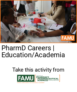 <a href="https://corereadiness.com/learning-center/course/P57864889/CO93549595" title="View the PharmD Careers | Education/Academia activity by FAMU Pharmacy"><img src="https://corereadiness.com/embed/course/CO93549595" alt="PharmD Careers | Education/Academia" /></a>
