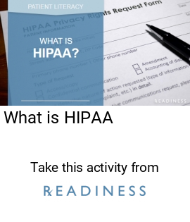 <a href="https://corereadiness.com/learning-center/course/P78230496/CO46899382" title="View the What is HIPAA activity by | READINESS "><img src="https://corereadiness.com/embed/course/CO46899382" alt="What is HIPAA" /></a>